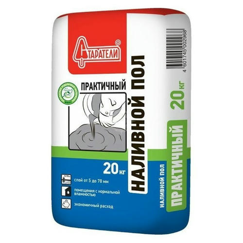 Наливной пол Старатели Практичный применяется для высококачественного выравнивания бетонных перекрытий, имеющих неровности (перепады, уклоны) от 5 мм до 70 мм под последующее покрытие. Используется в помещениях с нормальной влажностью при строительстве или ремонте зданий общественного и жилого назначения. Рекомендуется при устройстве системы «Теплый пол».