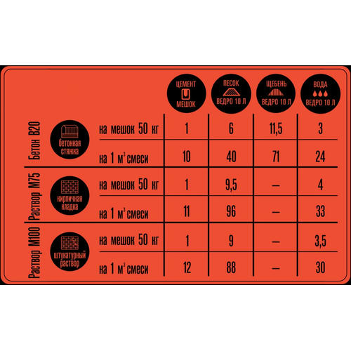 Расход воды и цемента рекомендуется корректировать при применении мелкого или крупного песка, изменении влажности заполнителей и использовании химической добавки. Бетонные работы рекомендуется проводить при температуре окружающей среды выше 0 градусов.