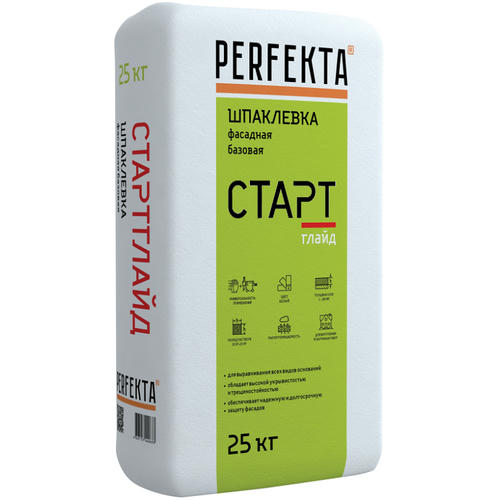 Шпатлевка цементная Perfekta Старт Глайд предназначена для качественного шпаклевания стен и потолков внутри и снаружи зданий. Применяется для отделки фасадов, цоколей, подвалов и помещений с любой степенью влажности, легко наносится и разравнивается, обладает повышенной трещиностойкостью и обеспечивает надежную защиту фасадов от атмосферных воздействий. Применяется для внутренних и наружных работ. Наносится ручным или машинным способом.
