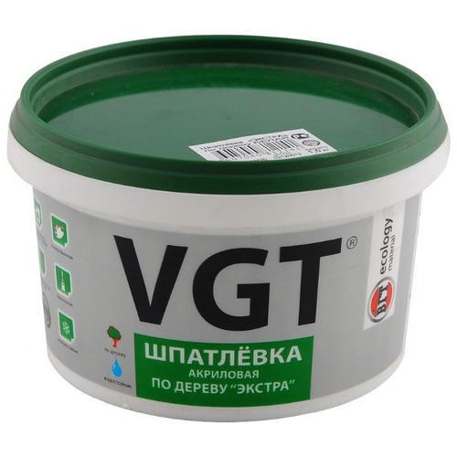 Шпатлевка акриловая по дереву VGT Экстра белая – тонкодисперсная шпатлевка для заделки сучков, трещин, иных деревянных поверхностей и проведения других ответственных работ по ДВП, МДФ, ДСП, бетону, кирпичу, штукатурке и др.
