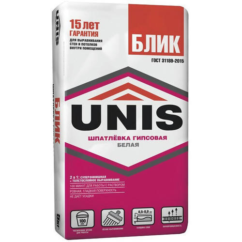 Белоснежная шпатлевка на основе природных материалов для толстослойного и финишного выравнивания поверхностей стен и потолков под последующую декоративную отделку; заделки неглубоких выбоин, трещин, раковин слоем до 8 мм, швов ГКЛ, ГВЛ с использованием армирующей ленты.
