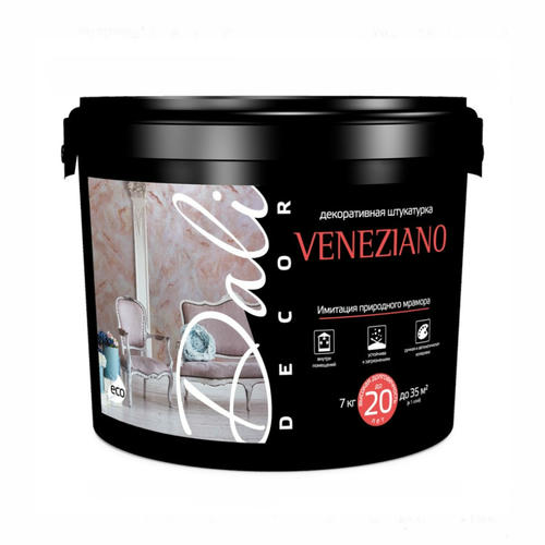 Венецианская штукатурка для стен DALI-DECOR Veneziano – это не просто отделочный материал, это – произведение искусства. Она открывает поистине безграничные просторы для творчества и будет уместна независимо от стиля и дизайна помещения. Безукоризненно элегантное классическое покрытие, напоминающее отполированный камень, поражает глубиной рисунка и благородным блеском, а различные техники нанесения материала позволят, помимо традиционного, получить еще несколько интересных альтернативных вариантов покрытий.