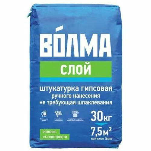 ВОЛМА-Слой – сухая штукатурная смесь на основе гипсового вяжущего, легкого заполнителя с применением минеральных и химических добавок, обеспечивающих высокую адгезию, водоудерживающую способность и оптимальное время работы.