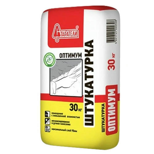 Штукатурка Старатели Оптимум изготовлена на основе комплексного вяжущего, минеральных наполнителей и высококачественных модифицирующих добавок, позволяющий в короткие сроки качественно выполнять отделочные работы.