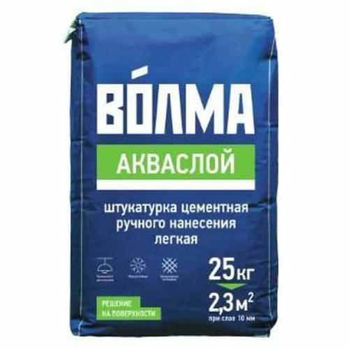 Выравнивающая штукатурка Волма Акваслой – сухая легкая цементная выравнивающая штукатурная смесь на основе портландцемента с легкими наполнителями, полимерными и минеральными добавками, улучшающими эксплуатационные свойства раствора, трещиностойкая, армированная волокнами, для ручного нанесения снаружи и внутри здания.